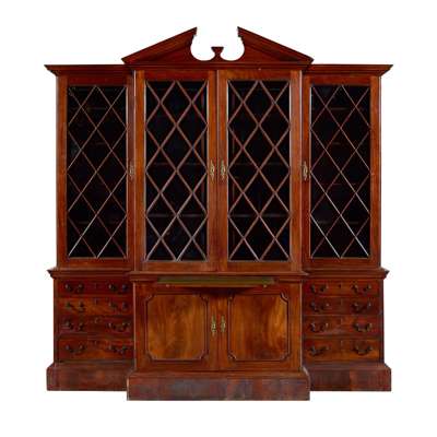LATE GEORGE II/ EARLY GEORGE III MAHOGANY BREAKFRONT BOOKCASE