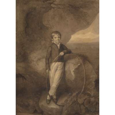 Signed, grisaille, and a companion by the same hand 'Young Boy with Hoop'
