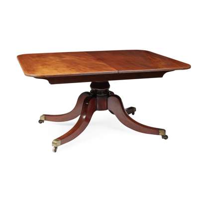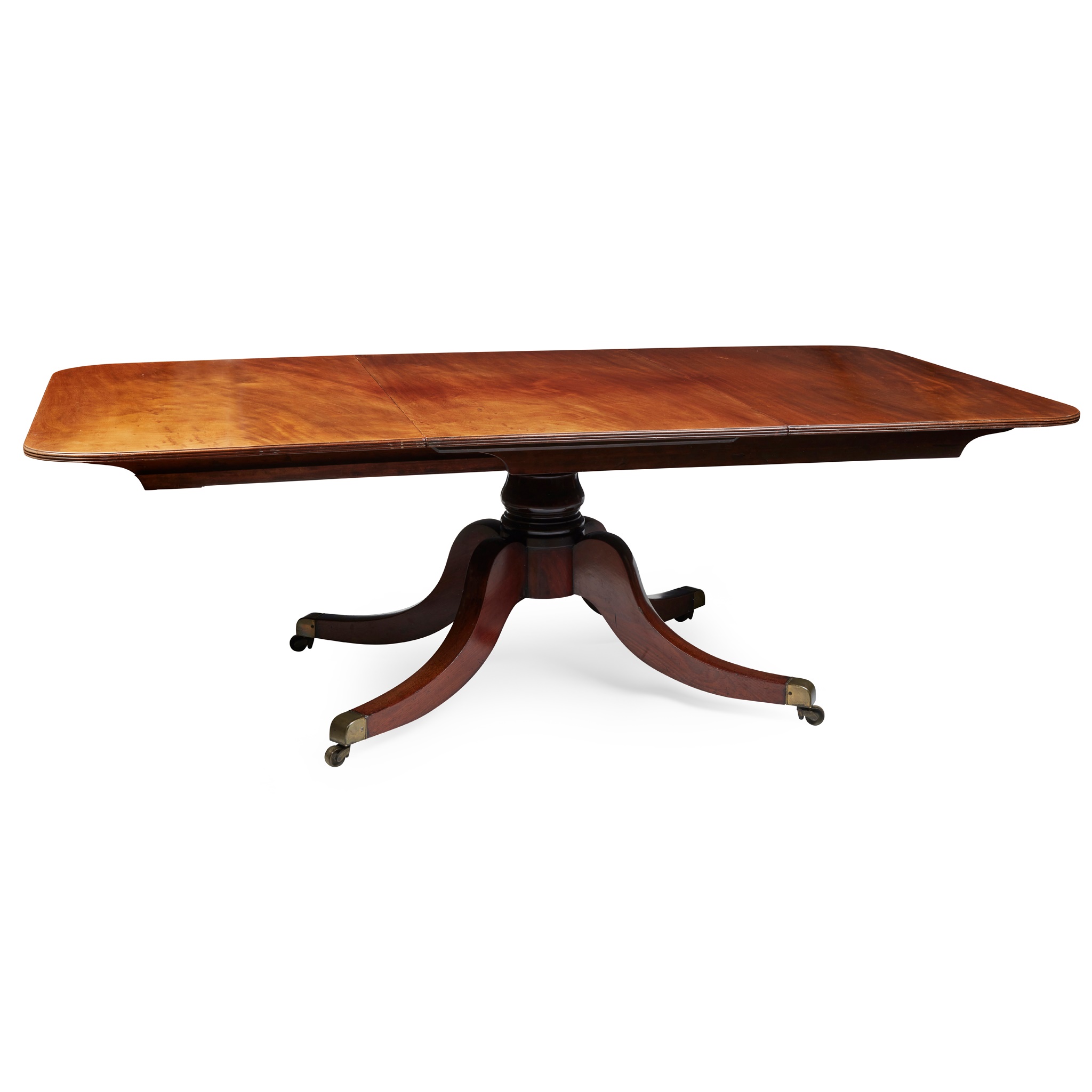 REGENCY MAHOGANY EXTENDING PEDESTAL DINING TABLE