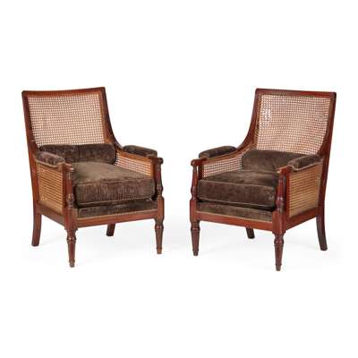 PAIR OF REGENCY STYLE MAHOGANY BERGÈRES