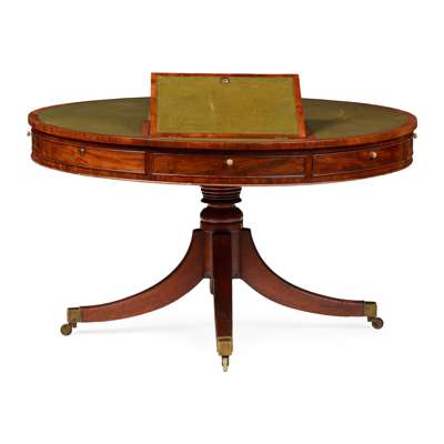 REGENCY MAHOGANY DRUM LIBRARY TABLE
