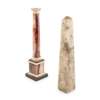 modelled as a Doric column on a square plinth, the mounts carved in white marble and black slate, together with BLUE JOHN OBELISK, of tapering square form with fills and losses