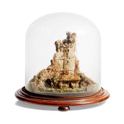 DOME CASED DIORAMA OF A CASTLE RUIN Y