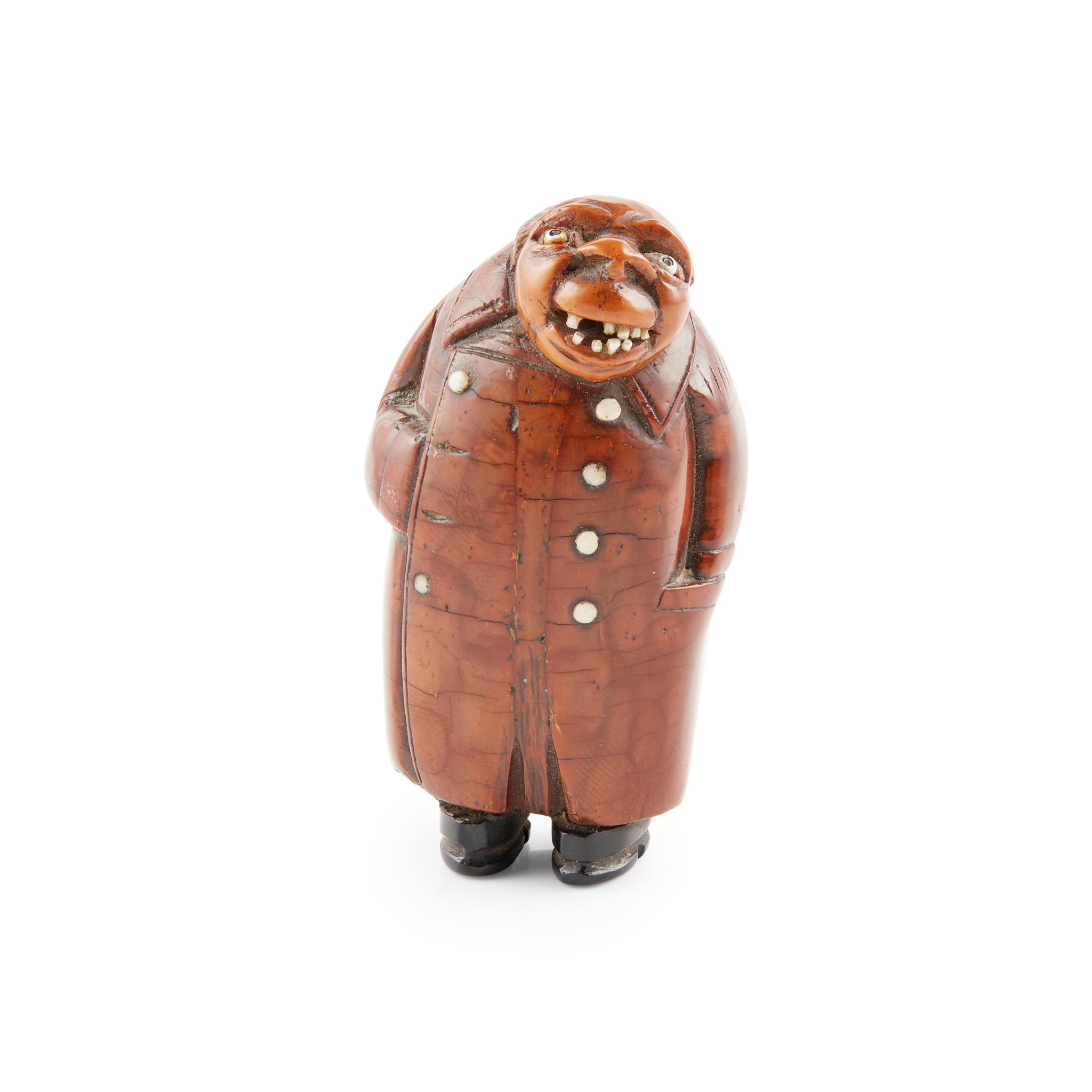 CARVED COQUILLA NUT CHARACTER SNUFF BOX