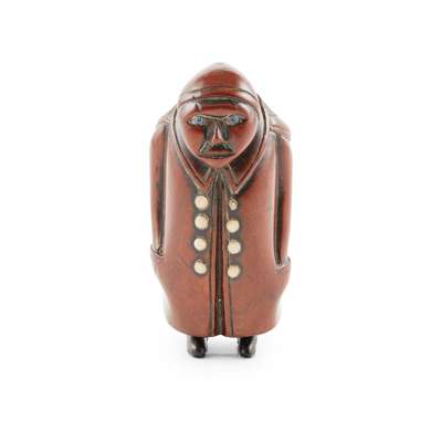 CARVED COQUILLA NUT CHARACTER SNUFF BOX