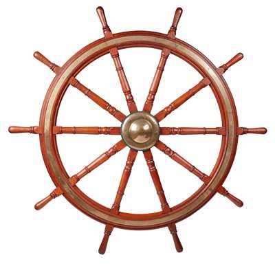 LARGE 6 1/2 FOOT TEAK, BRASS AND IRON SHIP'S WHEEL