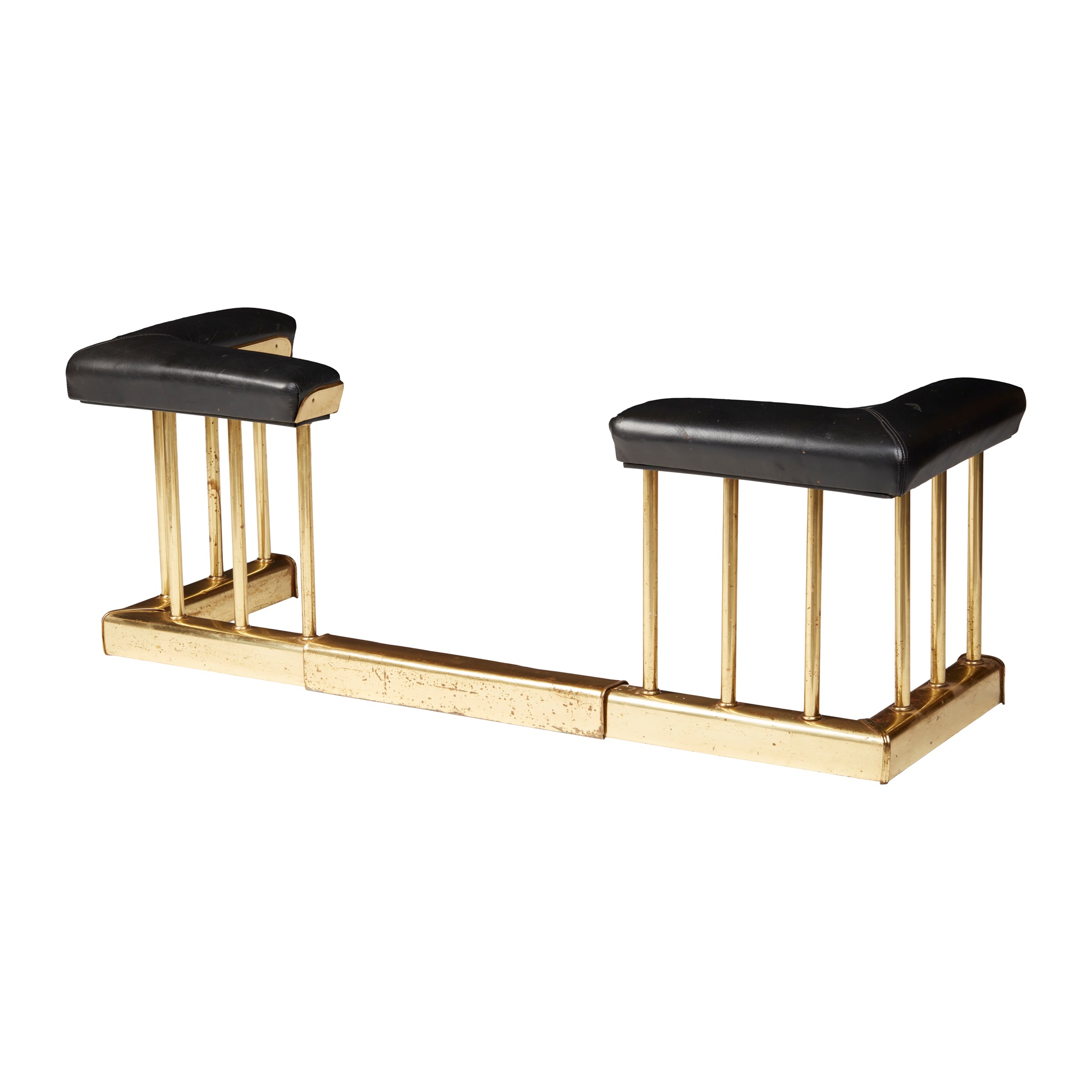 with L shaped black leather fender pads on an adjustable brass spindle base