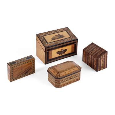 FOUR VARIOUS TUNBRIDGE WARE STATIONERY BOXES Y