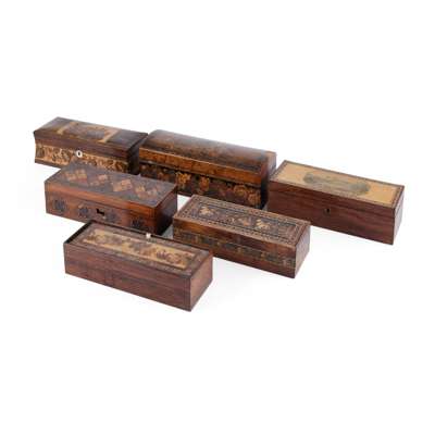 SIX TUNBRIDGE WARE GLOVE BOXES Y