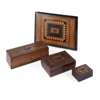 comprising a blotter, with felt interior, 31cm wide, 22cm wide; a glove box, inscribed to the bottom 'Edith Hawthorne from her aunt Mrs Wilmart, Thornton Manor House, about 1838', 24cm long, 7cm high, 9.5cm deep; a jewellery box with fitted interior, 17cm wide, 6cm high, 12cm high; and a small box with lift-off lid, 9.5cm wide, 3.5cm high, 6.5cm deep