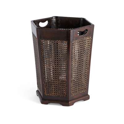 EDWARDIAN MAHOGANY CANED WASTE PAPER BASKET