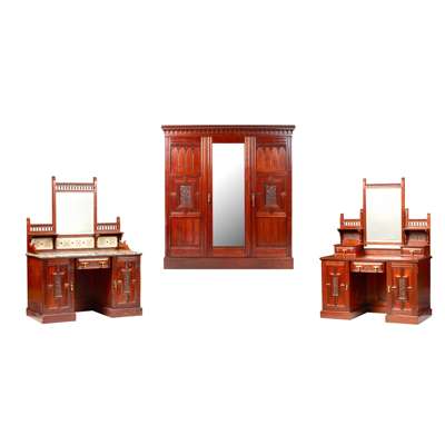 VICTORIAN AESTHETIC PERIOD MAHOGANY AND SATIN BIRCH THREE PIECE BEDROOM SUITE, BY MAPLE & CO.