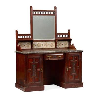 dressing table 130cm wide, 178cm high, 61cm deep; washstand 130cm wide, 171cm high, 61cm deep; wardrobe 205cm wide, 221cm high, 59cm deep