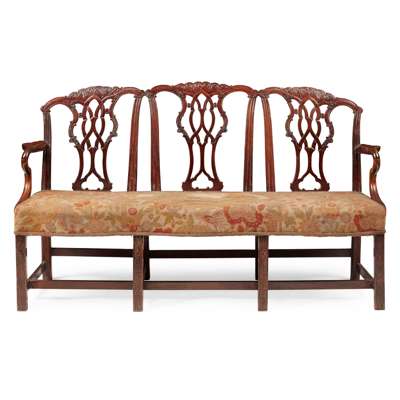 IRISH GEORGE III MAHOGANY TRIPLE CHAIRBACK SETTEE