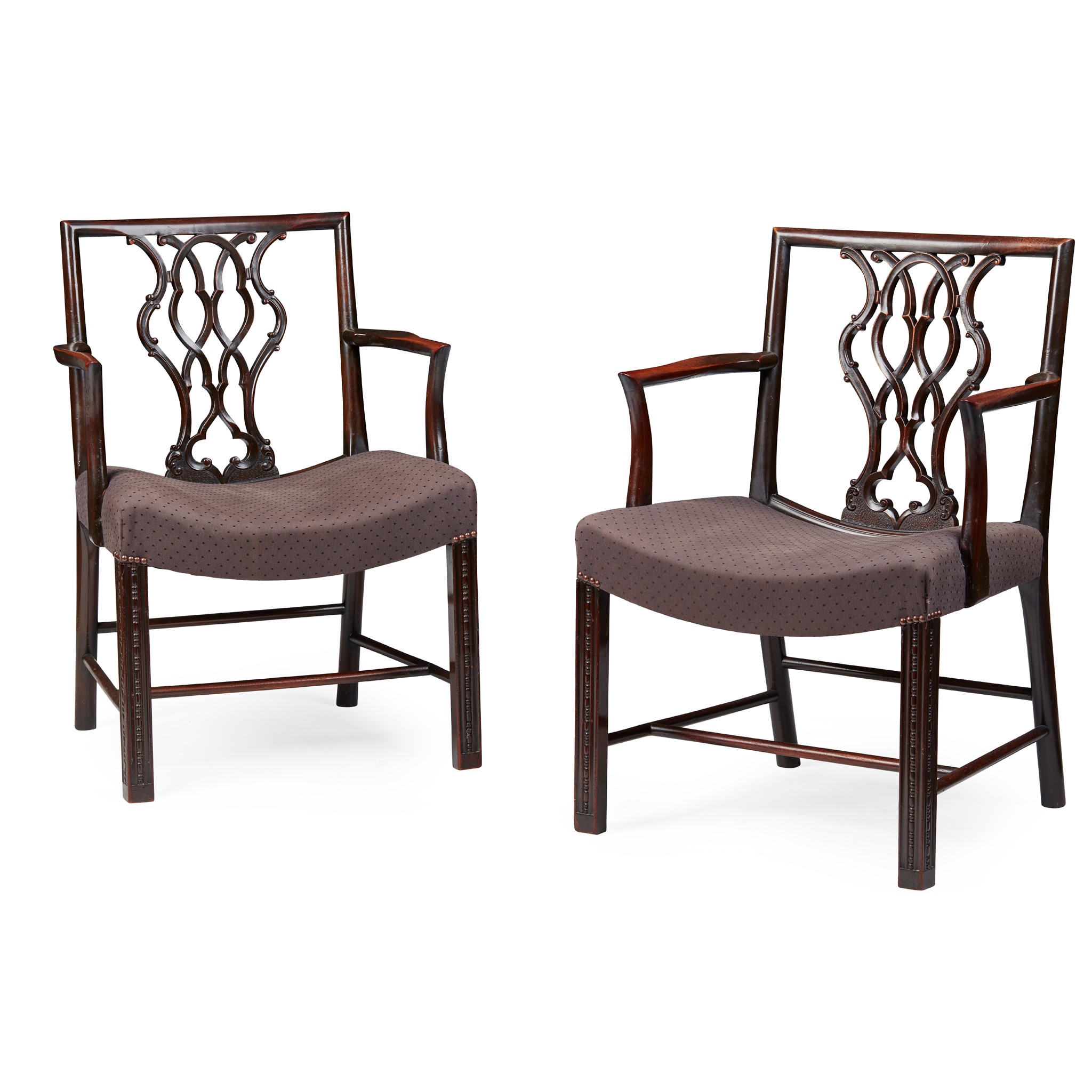 PAIR OF GEORGIAN STYLE MAHOGANY ARMCHAIRS, BY WHYTOCK & REID