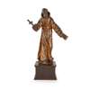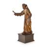 depicted standing with his arms outstretched holding a crucifix, in a cowl with cord around the waist, mounted on a stained wood square plinth