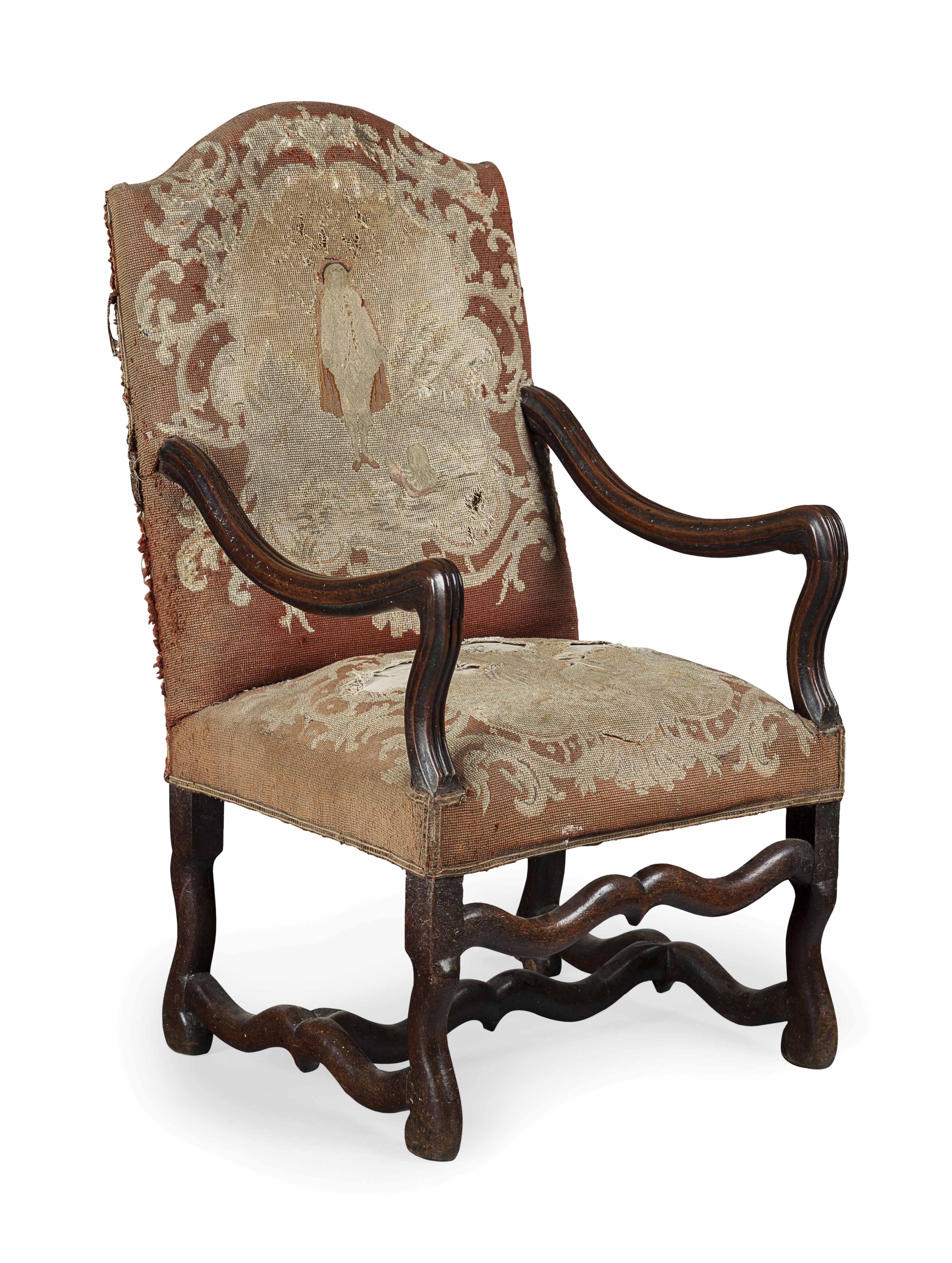 FLEMISH WALNUT AND NEEDLEWORK UPHOLSTERED OPEN ARMCHAIR