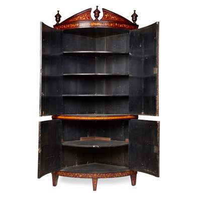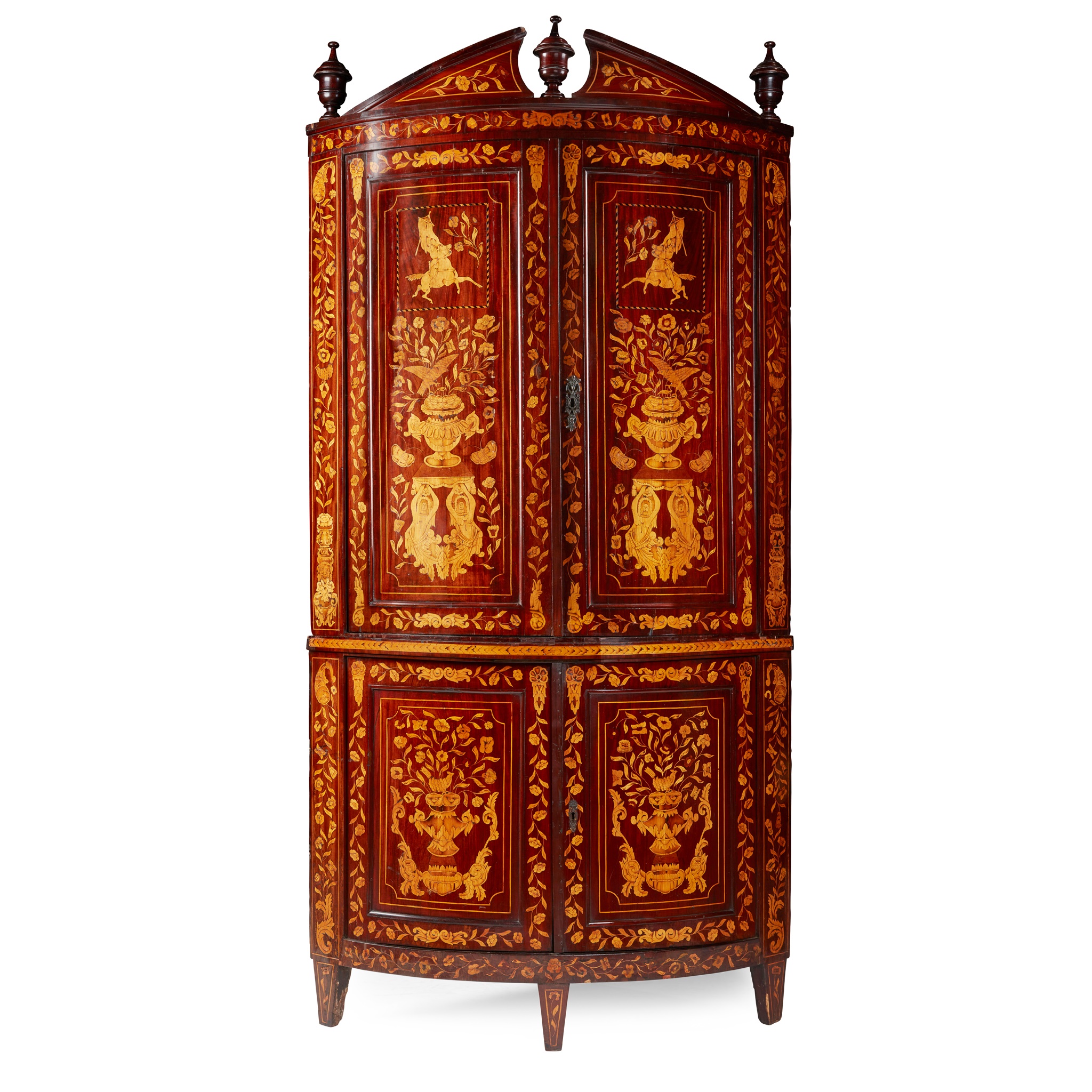 DUTCH MARQUETRY BOWFRONT CORNER CABINET
