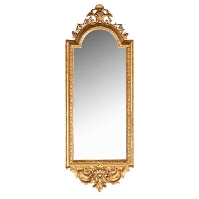 the break arch mirror plates within laurel moulded frames surmounted by pierced scroll and shell pediments