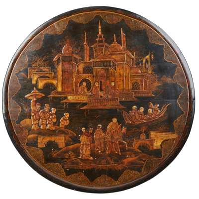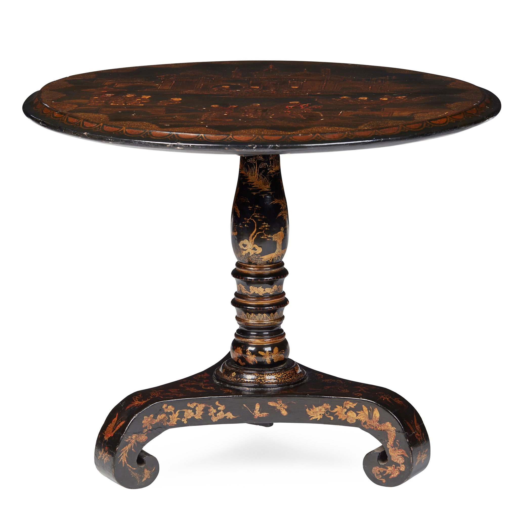 CONTINENTAL BLACK AND GILT JAPANNED PEDESTAL TABLE
