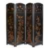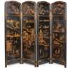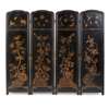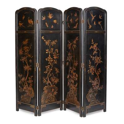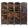 FRENCH JAPANNED BLACK AND GILT LACQUER FOUR PANEL FOLDING SCREEN