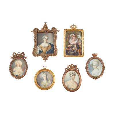 GROUP OF SIX PORTRAIT MINIATURES OF FAMOUS NOBLE LADIES Y
