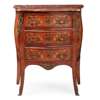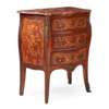 FRENCH KINGWOOD, AMARANTH, AND MARQUETRY PETITE BOMBÉ COMMODE