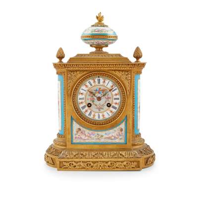 FRENCH SÈVRES STYLE PORCELAIN AND GILT BRONZE MANTEL CLOCK