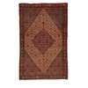 the cream field with indigo medallion, similar spandrels, with allover harati pattern, within narrow red border