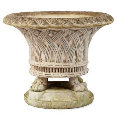 with moulded rope lattice design, mounted on four paw feet on a stepped plinth base