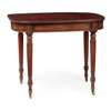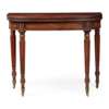 the D shaped fold-over top with a reeded edge, opening on double gatelegs, above a cockbead moulded frieze and raised on reeded tapered legs ending on brass caps and castors