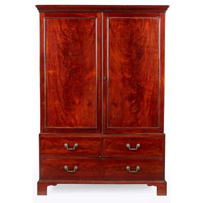 LATE GEORGIAN MAHOGANY LINEN PRESS