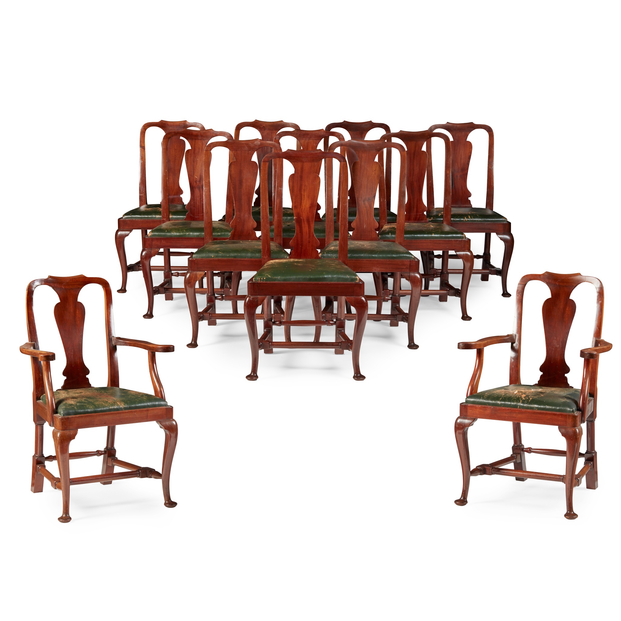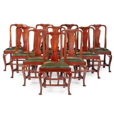 SET OF TWELVE QUEEN ANNE STYLE MAHOGANY DINING CHAIRS