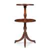 with two graduated dished tiers on turned supports, the lower tier revolving, raised on a stop-fluted outswept legs with brass castors