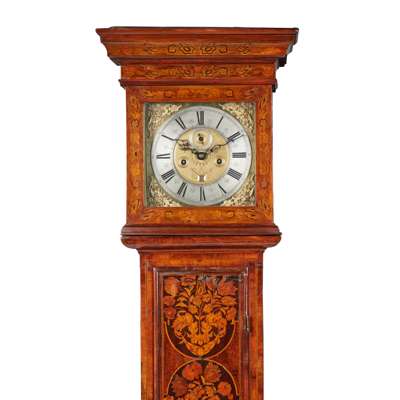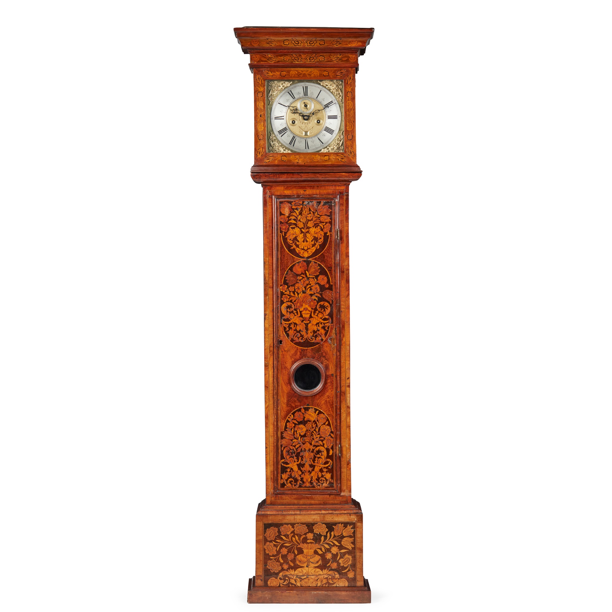 QUEEN ANNE WALNUT AND MARQUETRY LONGCASE CLOCK, BY NATHANIEL BIRT, LONDON