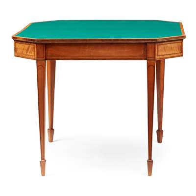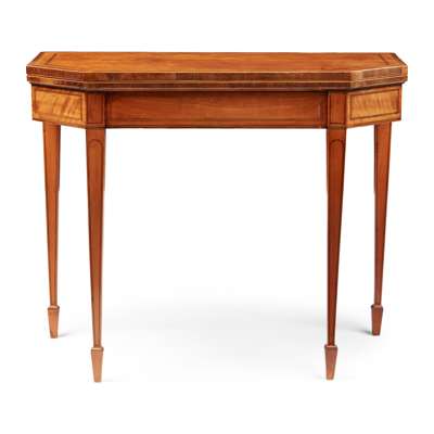 LATE GEORGE III SATINWOOD AND TULIPWOOD CARD TABLE