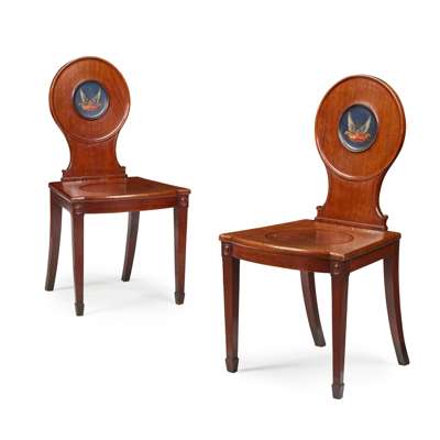 PAIR OF REGENCY MAHOGANY AND PAINTED HALL CHAIRS