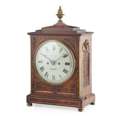 IRISH REGENCY BRASS INLAID MAHOGANY REPEATING BRACKET CLOCK, BY DAVID NEILL, BELFAST