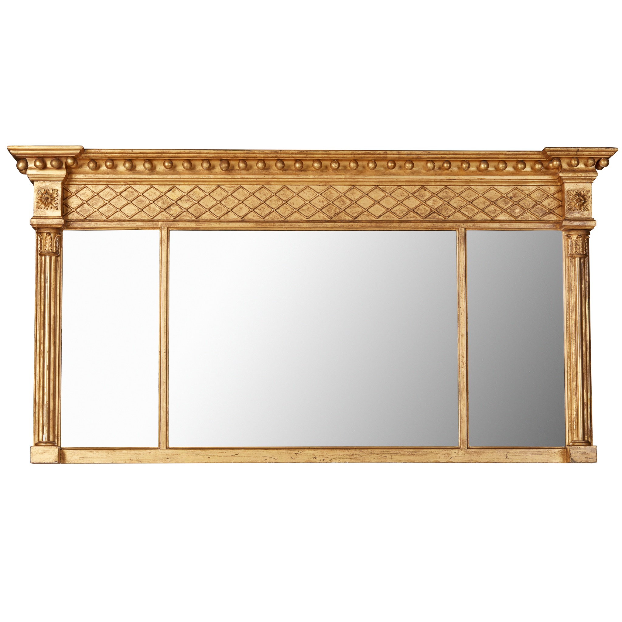 REGENCY GILTWOOD TRIPTYCH OVERMANTEL MIRROR