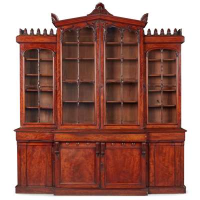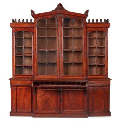 WILLIAM IV MAHOGANY SECRETAIRE BREAKFRONT BOOKCASE