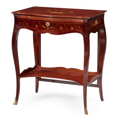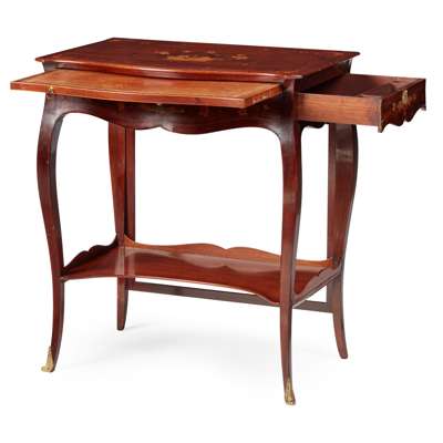 EARLY VICTORIAN MAHOGANY AND MARQUETRY LADY'S WRITING TABLE