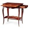 the top with a serpentine front inlaid with a flowering basket, with a rising screen to the rear, above a leather lined slide with a frieze drawer to the side, raised on cabriole legs joined by a shaped undertier with gilt metal mounts