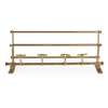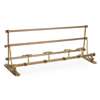 the cast and tubular brass frame with a three bar luggage rack with four coat hooks below