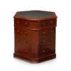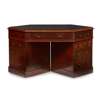 of unusual hexagonal form, the top with a navy leather insert and moulded edge, above three frieze drawers, raised on banks of graduated drawers with dummy drawers to the reverse, on plinth bases