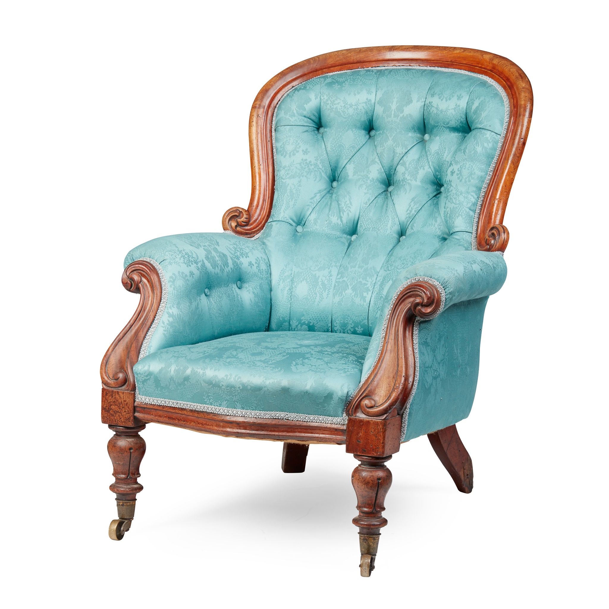 EARLY VICTORIAN MAHOGANY UPHOLSTERED ARMCHAIR
