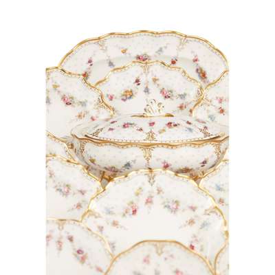 EXTENSIVE ROYAL CROWN DERBY DINNER SERVICE IN THE 'ROYAL ANTOINETTE' PATTERN