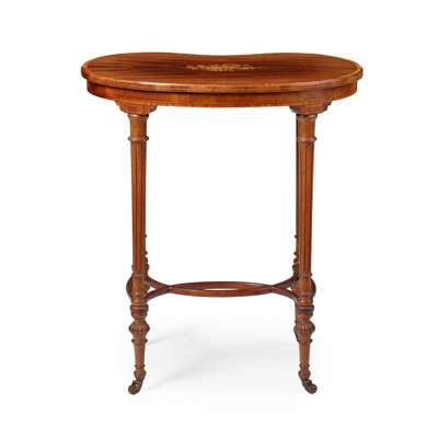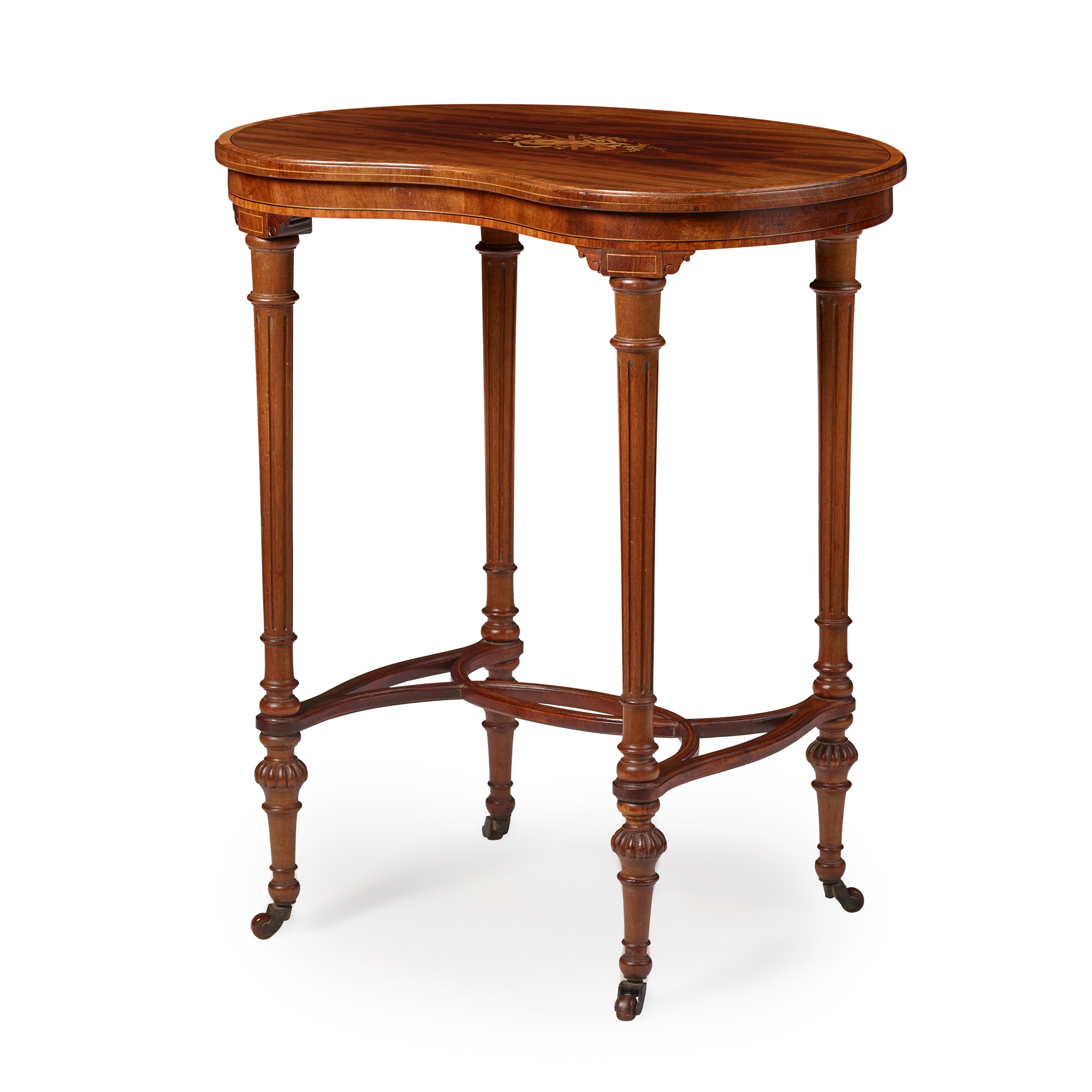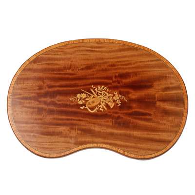 EDWARDIAN KIDNEY-SHAPED MAHOGANY AND MARQUETRY INLAID OCCASIONAL TABLE