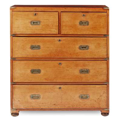 VICTORIAN TEAK CAMPAIGN SECRETAIRE CHEST OF DRAWERS