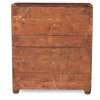 in two parts with brass corner mounts and handles; the upper part with two short drawers, one fitted as a secretaire, the lower part with three long drawers, raised on bun feet