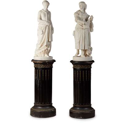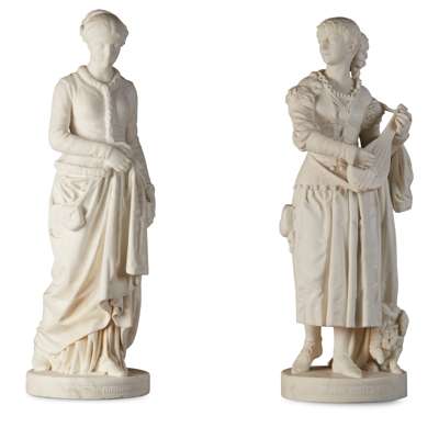 PAIR OF WHITE MARBLE FIGURES FROM SIR WALTER SCOTT'S 'THE FAIR MAID OF PERTH'